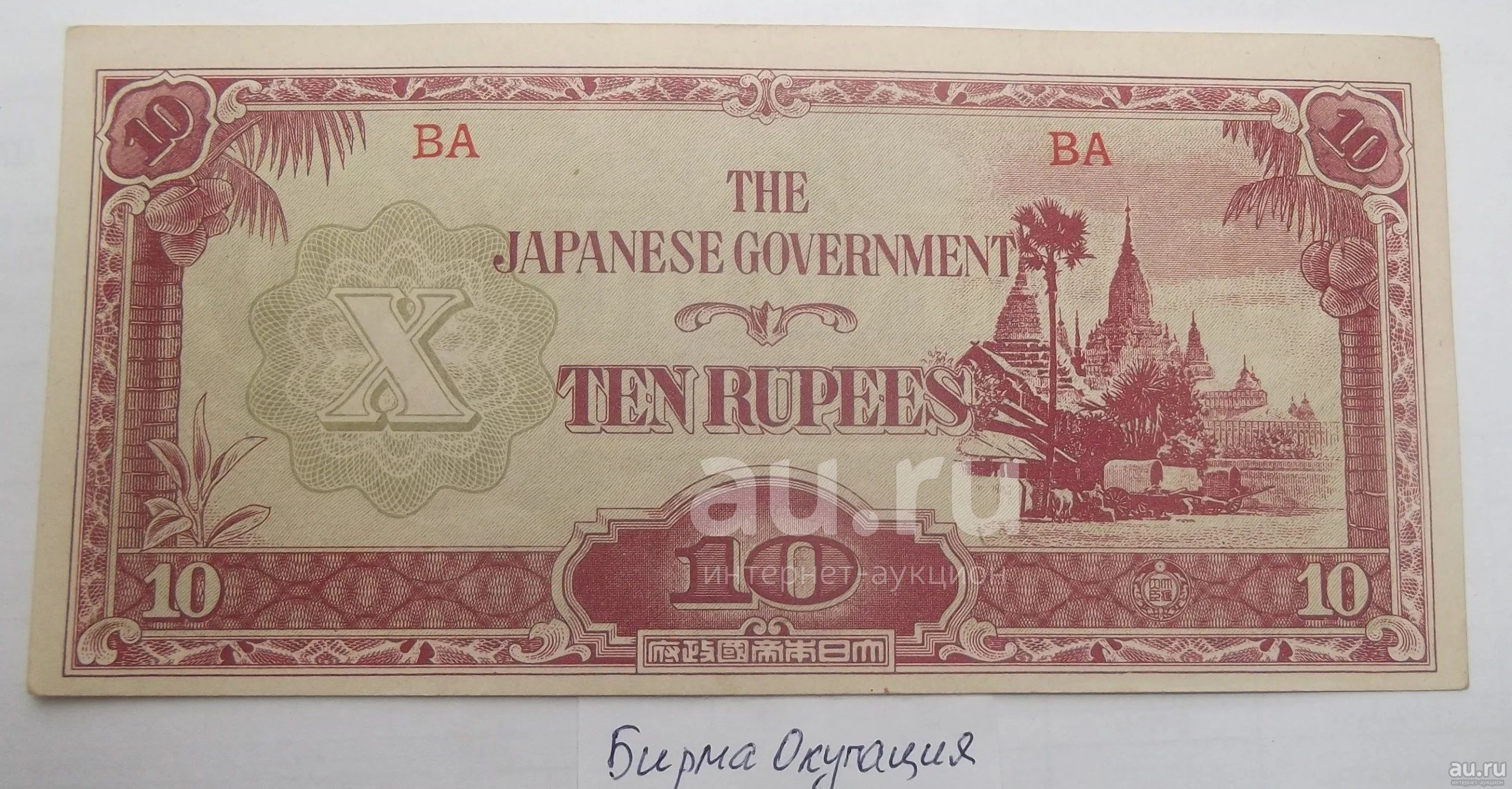 Банкноты Мира Бирма 10 рупий 1942 Японская Оккупация Состояние Дёшево.Оригинал Редкая