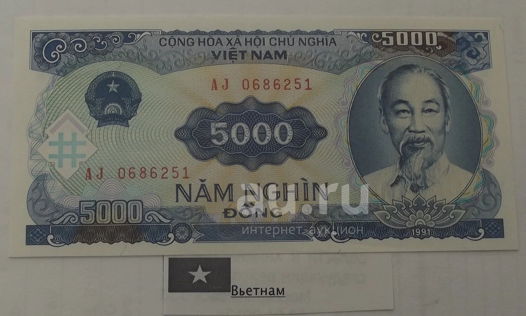 Банкнота Вьетнам 5000 ДОНГ 1991г UNC Оригинал.Дешево.