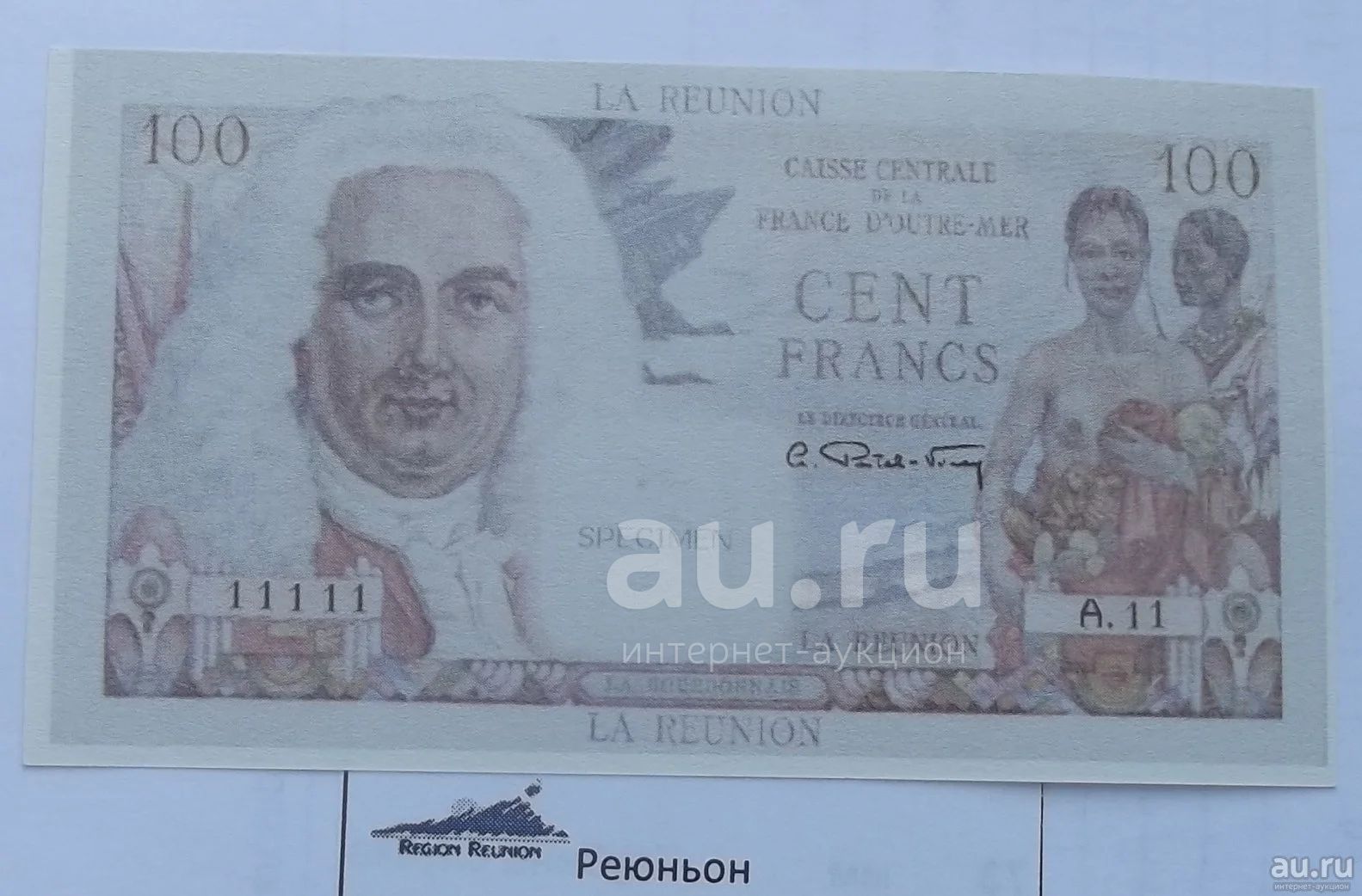 Банкнота Реюньон 100 франков КОПИЯ редчайшей банкноты.