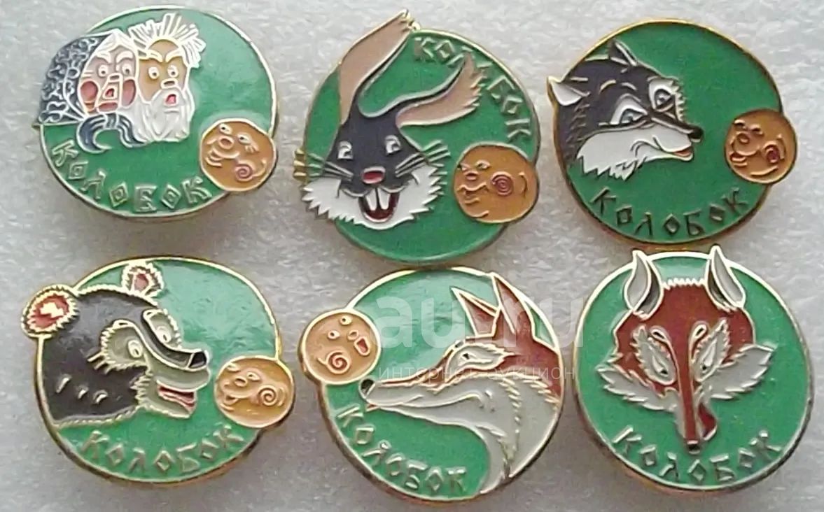 Значки СССР Детские Любимые Мультфильмы Колобок Набор Клеймо Шахтметалл Редкий