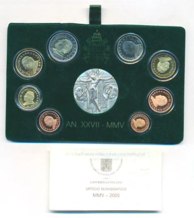 Ватикан - Набор 2005 Proof 8 евро монет + 1 Ag медаль патина капсулы футляр сертификат